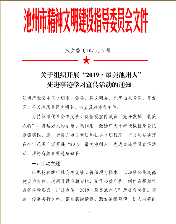 關于授予王娟等同志“2019·最美池州人”稱號的決定