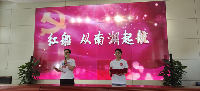 經(jīng)評委公平認(rèn)真評分,周昕瑞老師和董萬紅老師的組合朗誦《青春中國》斬獲第一名;吳婧婧老師和何琪老師朗誦的《紅船,從南湖起航》獲第二名;梅敬賢老師的《就是那一只蟋蟀》榮獲第三名。學(xué)生組吳福興第一名,吳蕾同學(xué)獲得第二名的好成績。