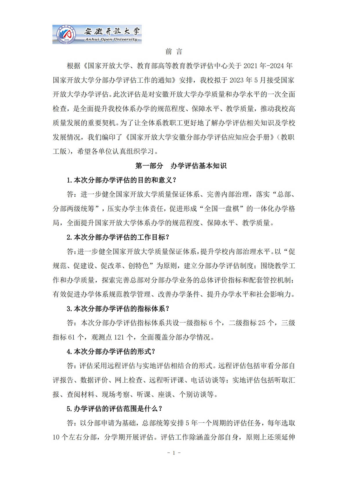 國家開放大學(xué)分部辦學(xué)評估應(yīng)知應(yīng)會(教職工版)
